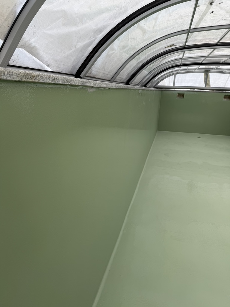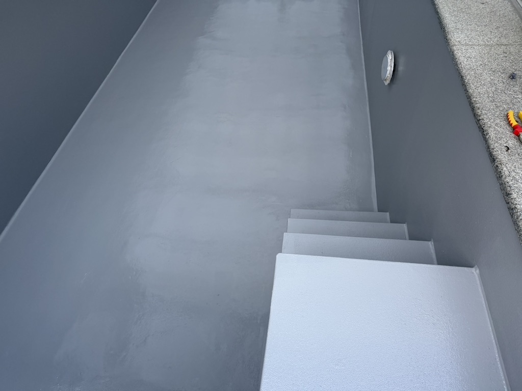 Der Pool ist nun vollständig fugenlos und dauerhaft wasserdicht beschichtet. Die Oberfläche ist elastisch, widerstandsfähig und leicht zu reinigen, wodurch sie ideal für den dauerhaften Wasserkontakt geeignet ist.